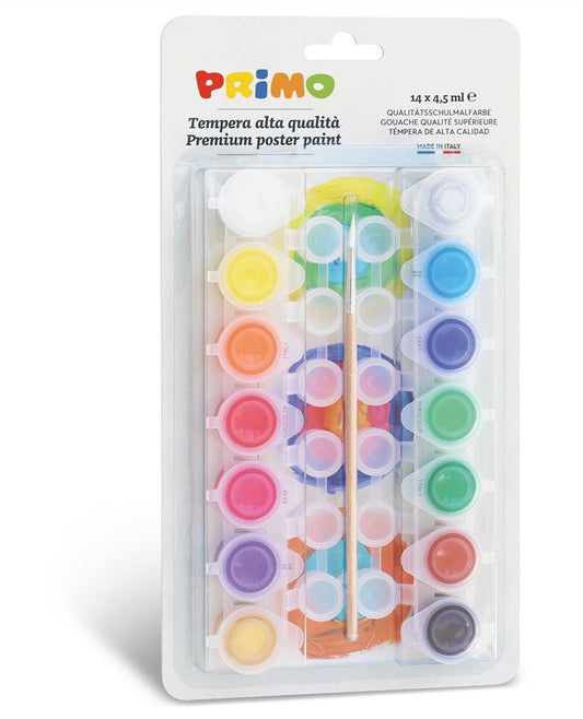 Primo - Plakkaatverf 14kleuren metkwast