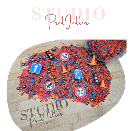 Studio Pretletter - Speelrijst Verkeer mix met Loose Parts (600g)